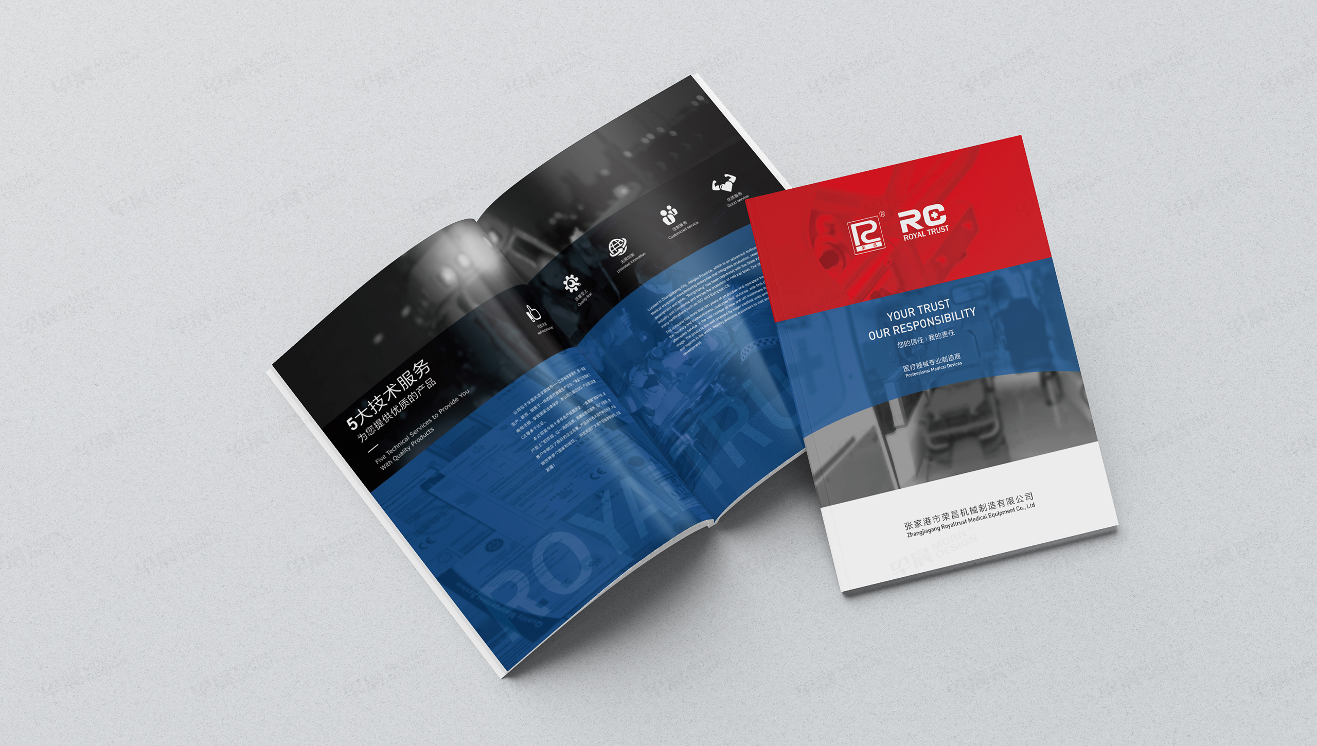 【荣昌医疗器械样本画册设计】早晨设计通过和客户沟通之后,了解客户的行业属性和产品内容,确定画册的整体风格,保证整体色彩搭配和谐统一,以确保设计符合企业的需求和目标。早晨设计是专业的样本画册设计和印刷制作公司。免费为企业提供样本设计咨询。